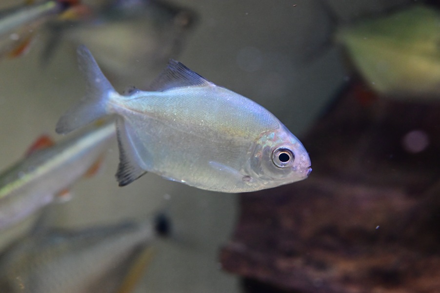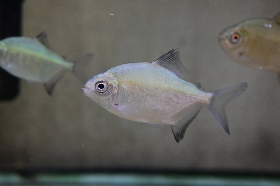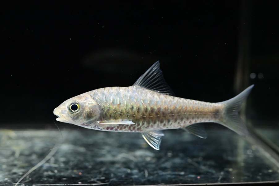 ロングノーズゴッセイです。10㎝程になる種で、ゴッセイをロングノーズにしたような見た目。ボディのメタリックグリーンとオレンジの鰭が美しい。