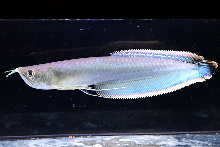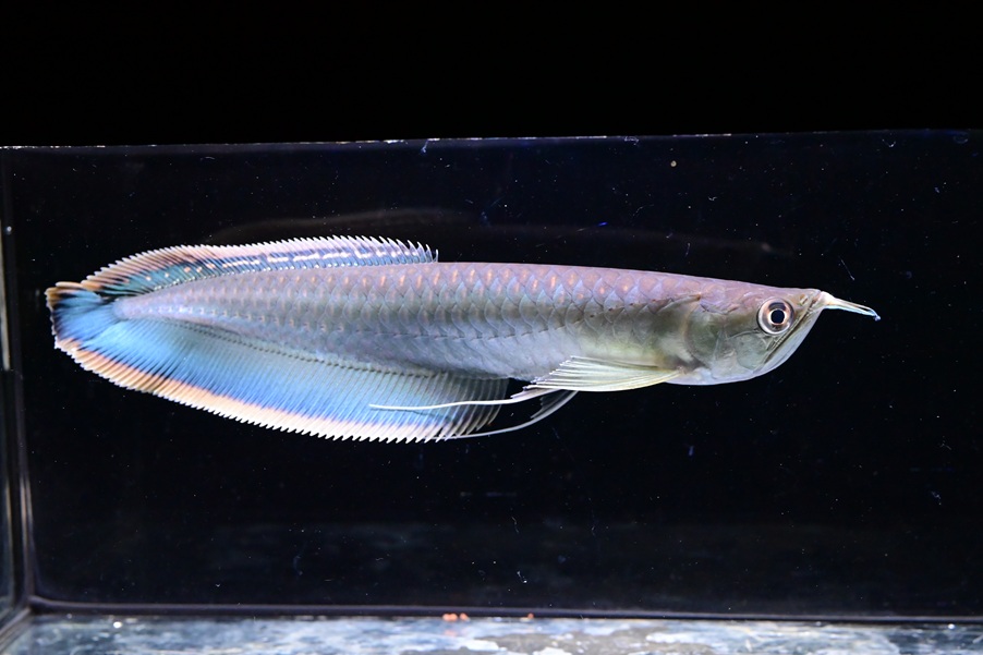 ブラジル産で入荷するミドルサイズのブラックアロワナ。青みが強くとても綺麗です。安心サイズ!