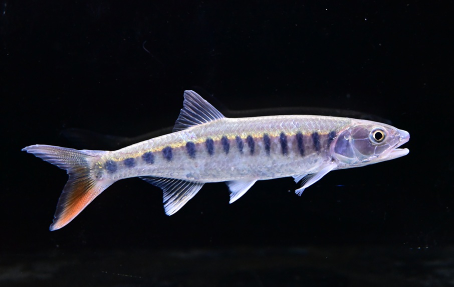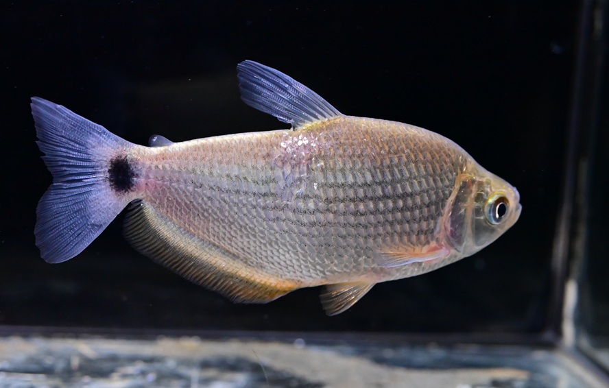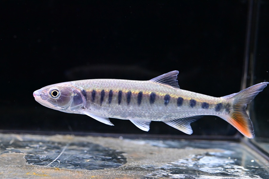 在庫です。高価ですがかなり綺麗です。赤茶の体色に細かいスポットが魅力的!尾筒、尾鰭の半分が黒く、独特な雰囲気です!