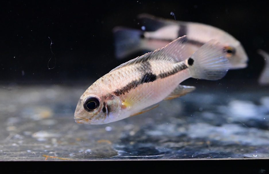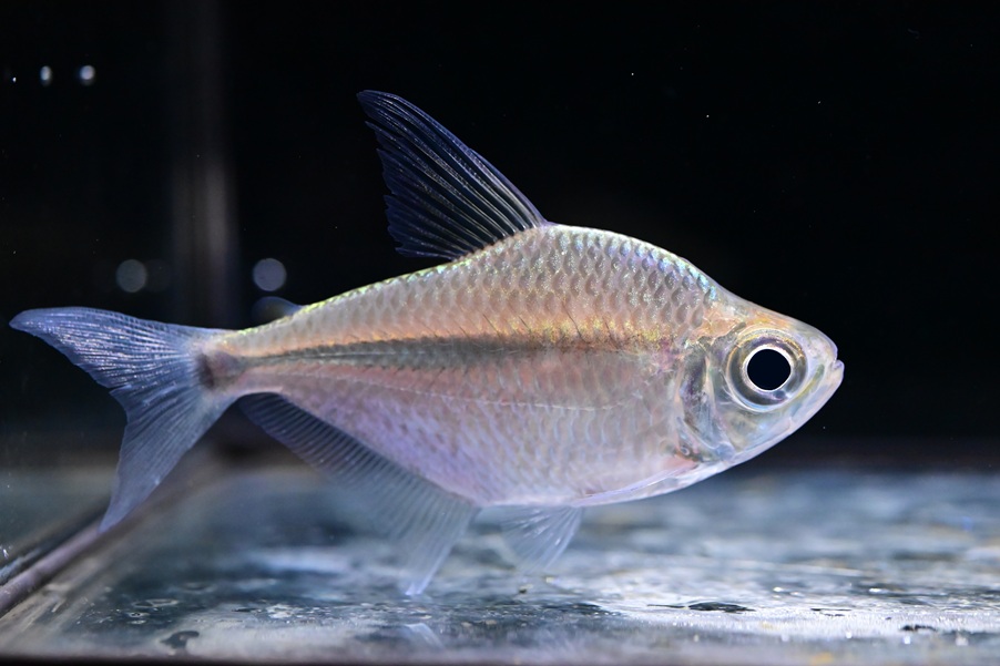 スリナム産のビッグアイカラシンです。今のところ鰭に色は載ってないので、おそらくビックリアイとかビッグスケールカラシンに近い感じの種ですね。背鰭は長く、今のところそんなに体高はないですね。10㎝以上にはなるので中型カラシン等との混泳に良いです!スリナムのビッグアイということで価格はそれなりですが、滅多に手に入らないと思いますのでビッグアイカラシンマニアの方は是非!1匹のみです。