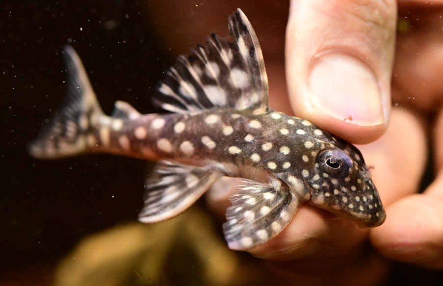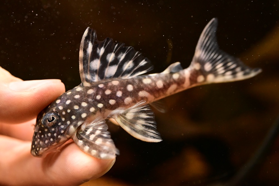 いつもより小さいブルーフィンペコ。青みの綺麗なプレコです。