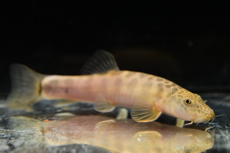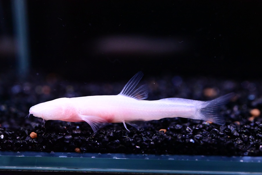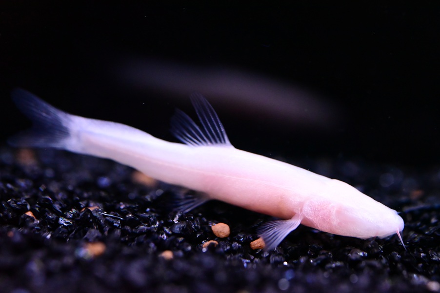 中国の洞窟に生息するいかにも洞窟に生息してます!っていう見た目のドジョウ。ちょっと前に入荷したんですが、残念なことに臀鰭が欠損しているため載せてませんでした。価格ももう少し安くしたいところですが、通常ですと11-12万くらいの高級ドジョウなので・・・。動きはそこまで早くなく、目もないしボディも白いので水温はあまり高くない方が無難な気がしますが、現在22℃程で管理していて問題はなさそうです。